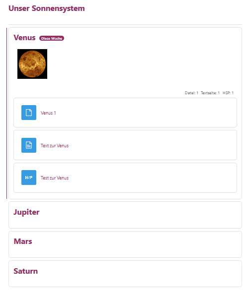 Die Darstellung dieser verschiedenen Kursabschnitte auf der Starseite des Kurses kann unterschiedliche gewählt werden.